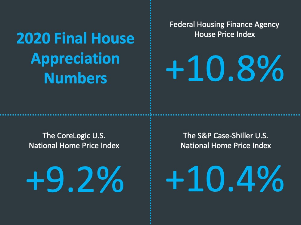 Since home prices are directly related to supply vs demand it should come as no surprise that home prices continue to rise. The final numbers for 2020 have just been released: