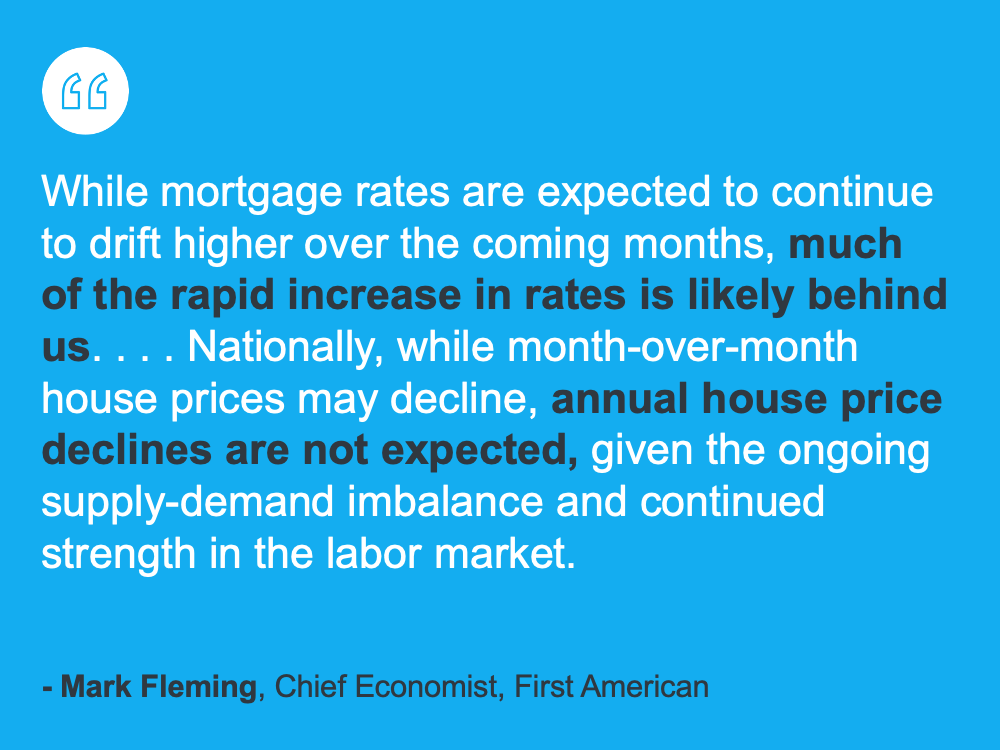 While home prices have fallen from their peak earlier this year, home prices are still up year-over-year and it isn’t looking as though meaningful year-over-year price declines will be experienced in the majority of markets across the country.