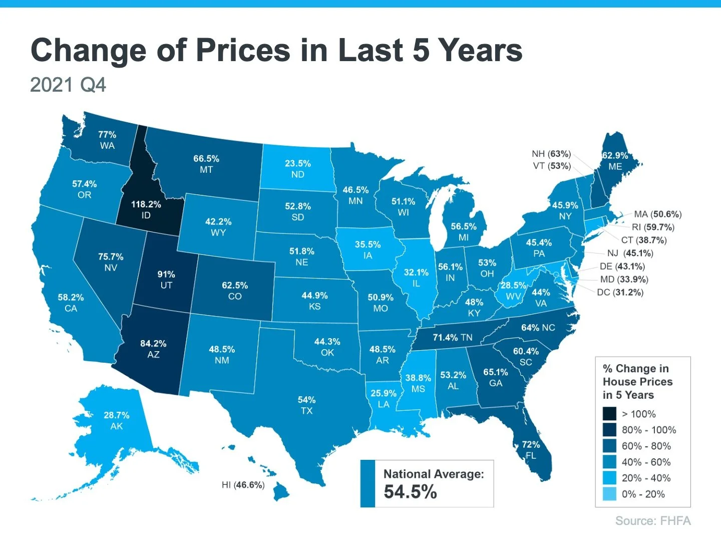 By comparison, here’s a look, by state, at cumulative price appreciation over the past 5 years;