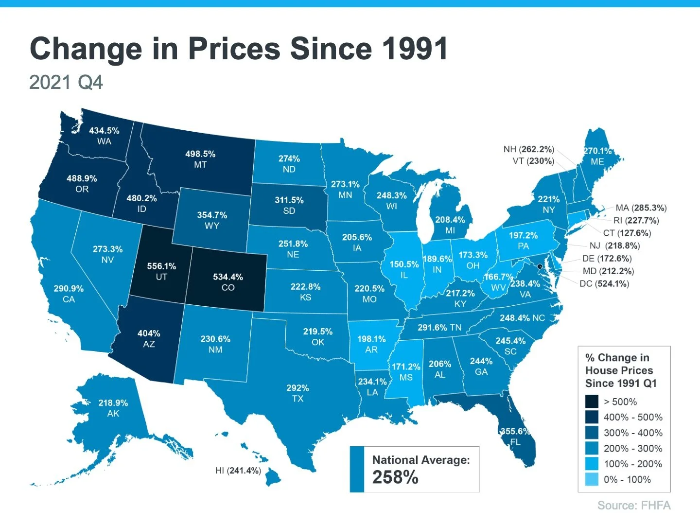 The average homeowner currently stays in their home between 9 and 11 years. Over time, real estate has proven to be one of the safest, and best appreciating, long-term assets.
