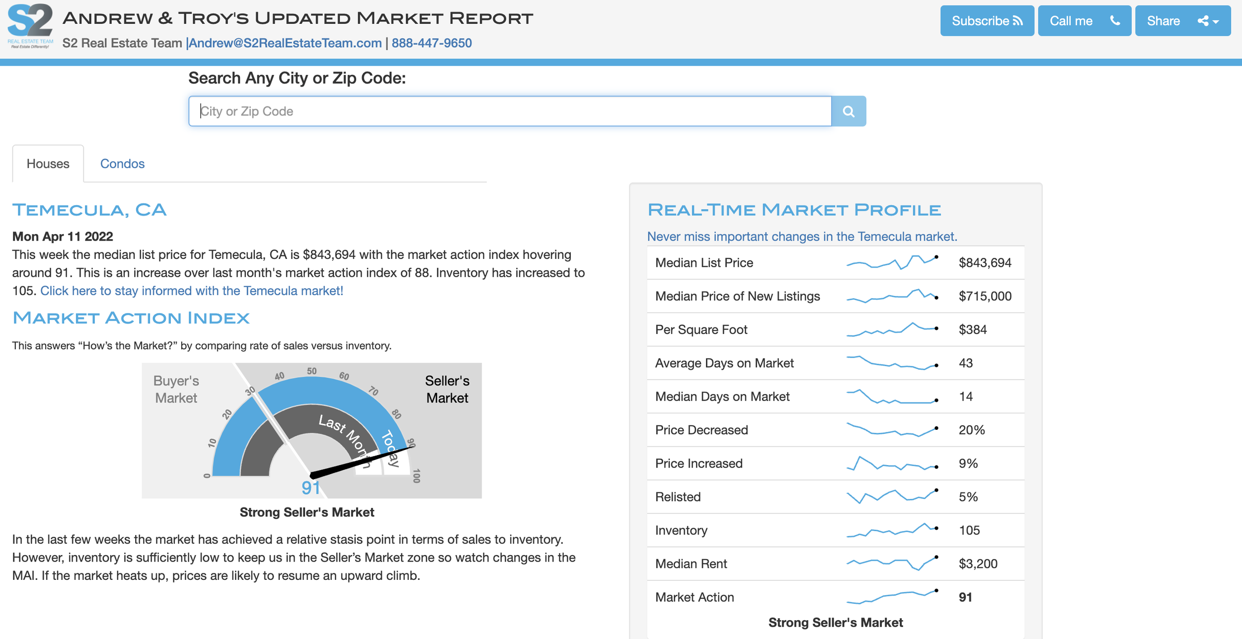 Although just slightly lower than Frisco or Phoenix, the Market Action Index in Temecula increased from the previous week as well.