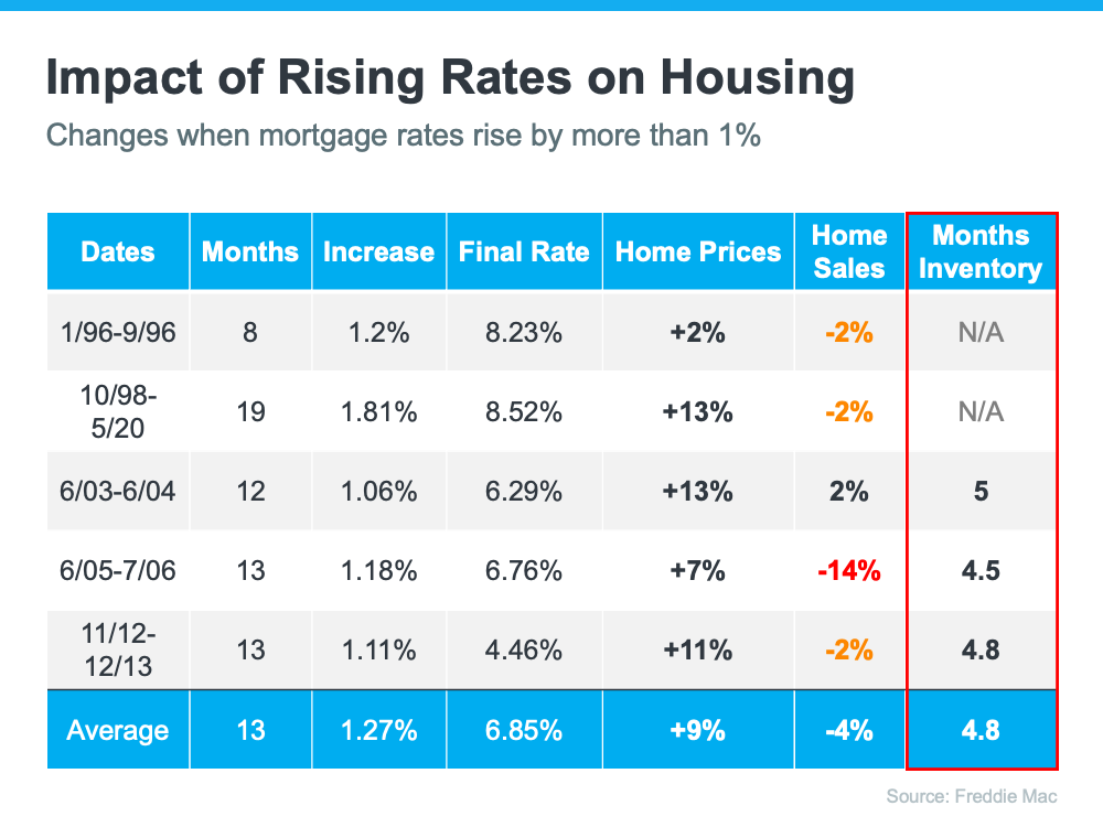 Although it’s logical to think the jump in mortgage rates will cause home prices to fall, historically we haven’t seen that happen in rising mortgage rate environments.
