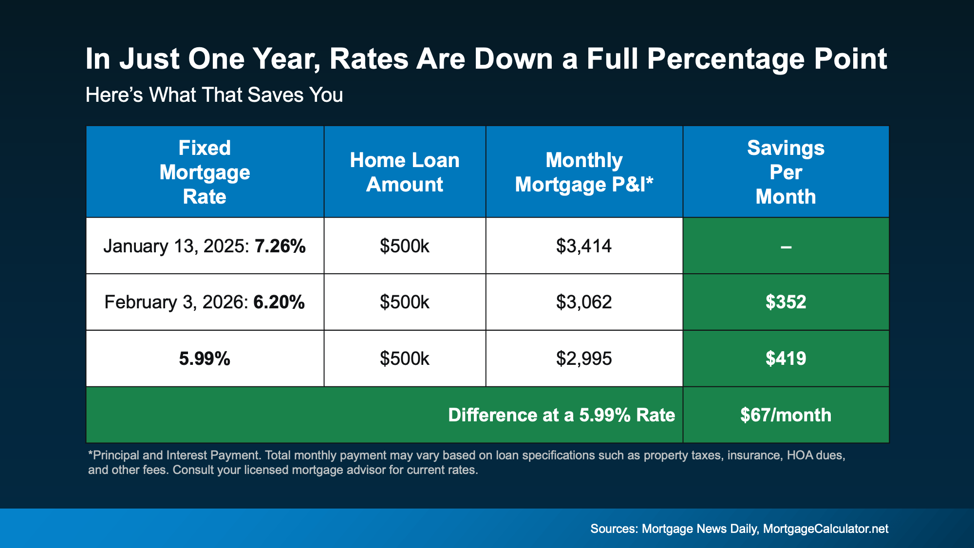 When you run the math, the difference between today’s rates and 5.99% often works out to about $60–$70 per month.
