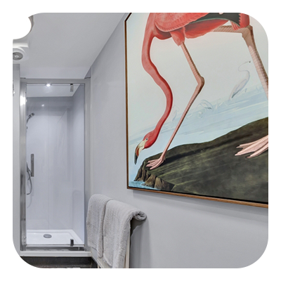 • Switch out the old showerhead for a large rain-style showerhead or any updated model that can be easily installed onto the existing plumbing.