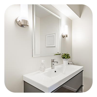 • Swap out faucets, cabinet pulls, shower controls, and other vanity features.